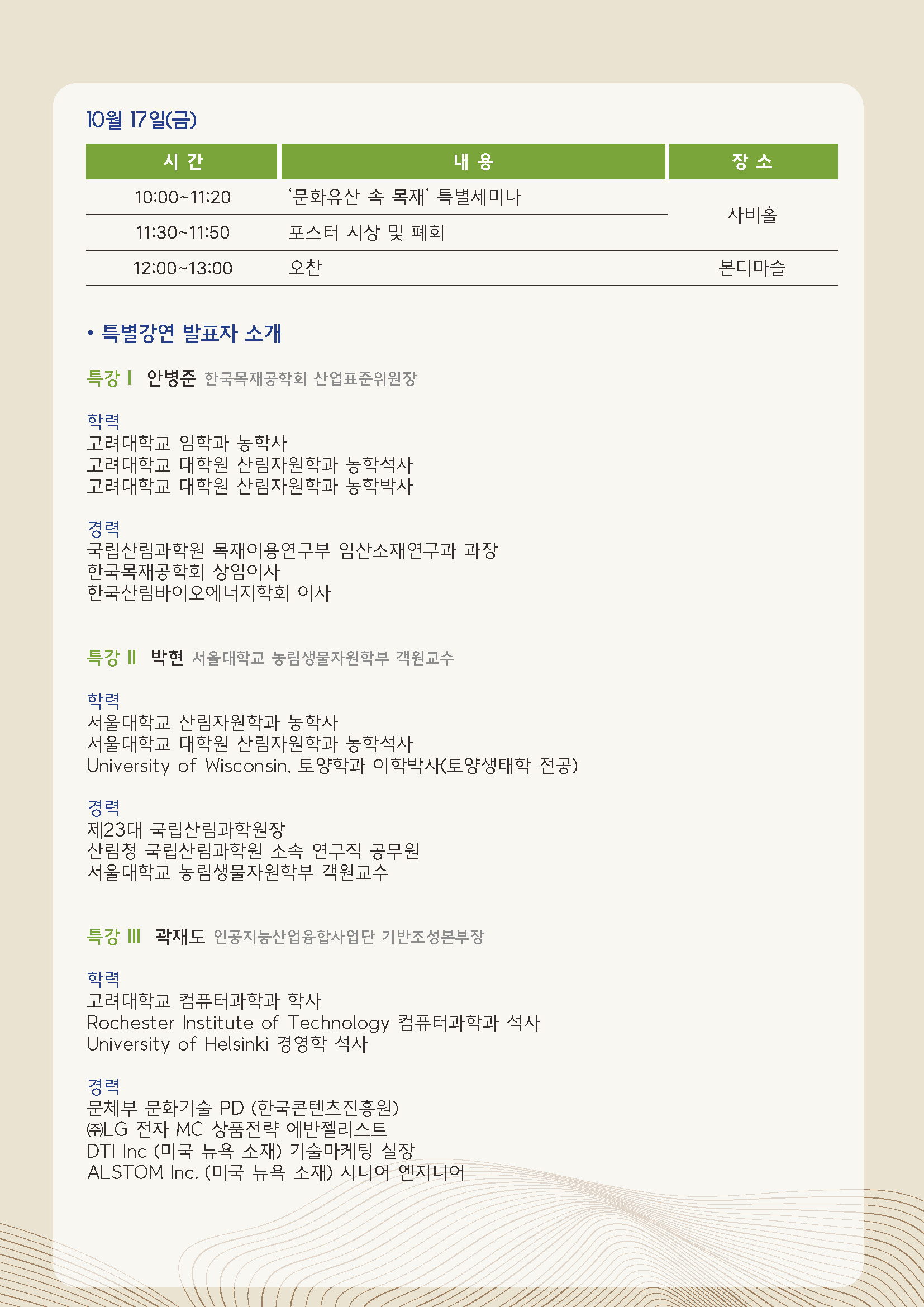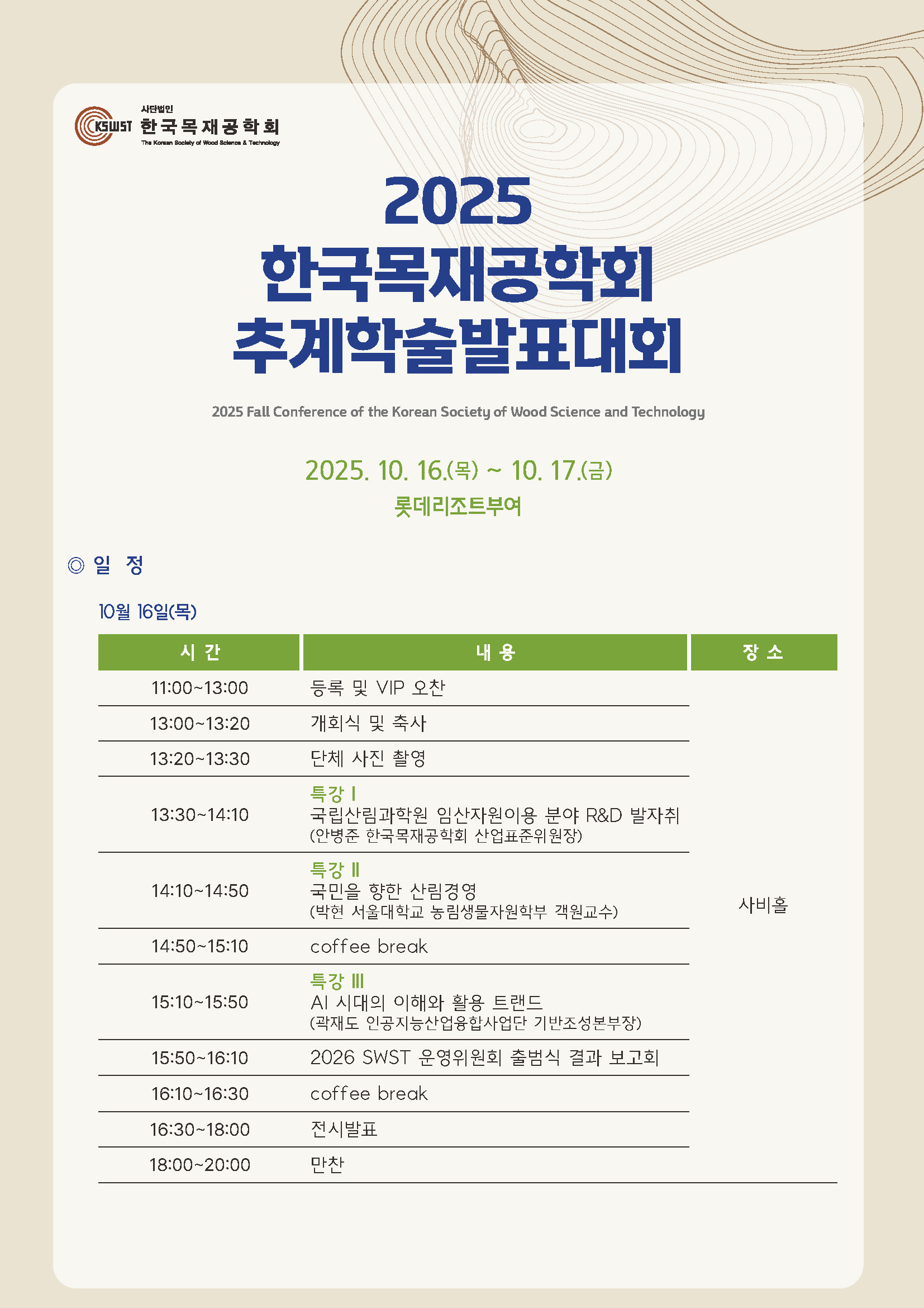 2025년 한국목재공학회 춘계학술발표대회 일정 및 특강 안내