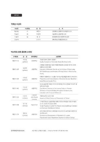 한국목재공학회 50년사 4장 학회 및 대내·외 활동 | 학회상 및 박사학위 취득 축하패 수여자 404